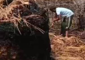 खलिहान में अचानक लगी आग,3 नेवारी का पुंज जला