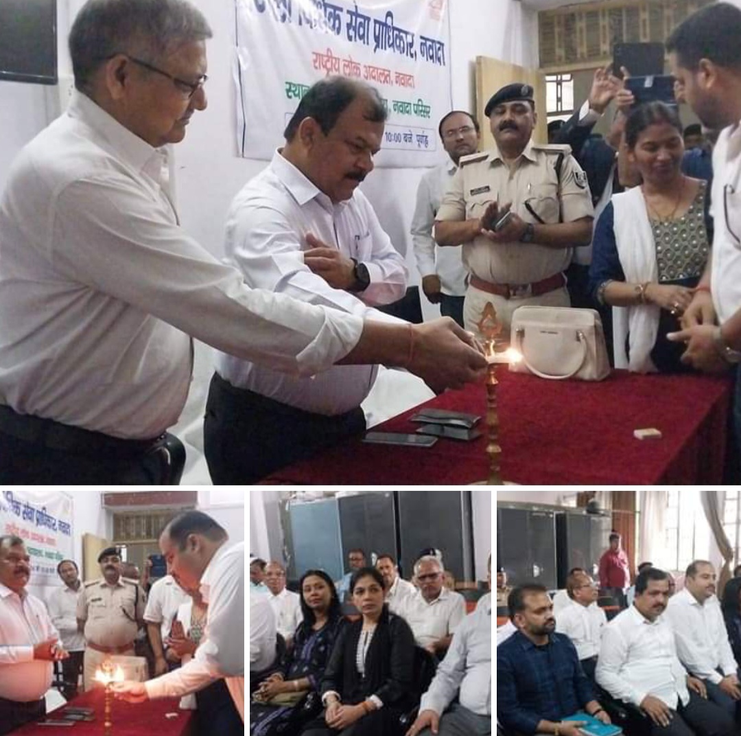 नवादा:- राष्ट्रीय विधिक सेवा प्राधिकार, नई दिल्ली एवं बिहार राज्य विधिक सेवा प्राधिकार, पटना के निर्देश के आलोक में विद्वान जिला एवं सत्र न्यायाधीश सह अध्यक्ष, जिला विधिक सेवा प्राधिकार, नवादा आशुतोष कुमार झा के मार्गदर्शन में कुमारी सरोज कीर्ति, सचिव जिला विधिक सेवा प्राधिकार, नवादा के सहयोग से आज दिनांक 14.09.2024 को 10ः00 बजे पूर्वाह्न से व्यवहार न्यायालय, नवादा परिसर में राष्ट्रीय लोक अदालत का आयोजन किया गया एवं पक्षकारों को सुलह के आधार पर वादों का निष्पादन किया गया।
