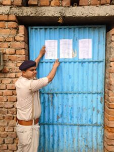 दहेज की खातिर विवाहिता की हत्या का मामला, पति सहित 3 फरार अभियुक्तों के घर पर पुलिस ने चिपकाया इश्तहार,