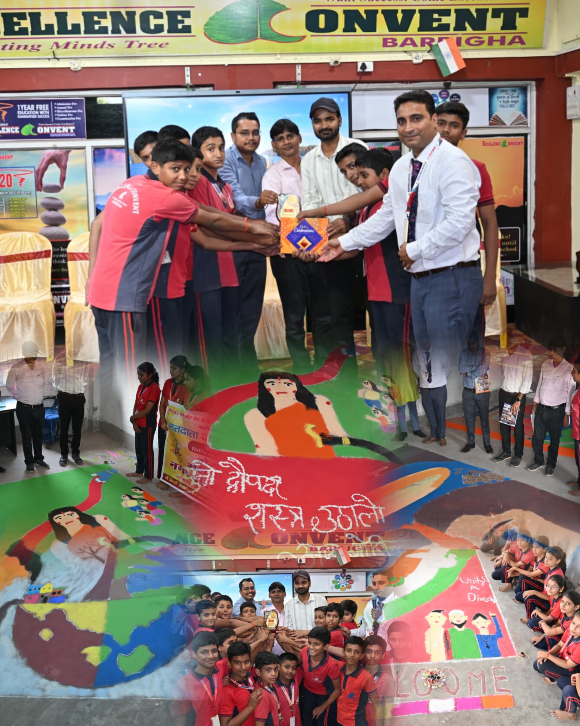 एक्सेलेंस कॉन्वेंट स्कूल बरबीघा में दीपावली के शुभ अवसर पर धूम–धाम से रंगोली का आयोजन किया गया जिसमें विद्यालय के सैकड़ों बच्चों ने बढ़चढ़ कर हिस्सा लिया। पूरे विद्यालय के छात्रों को 12 टीम में बिभक्त किया गया। विद्यालय के निर्देशक शत्रुघ्न कुमार ने इस आयोजन की अगुआई करते हुये बच्चों को बताया की कम से कम पटाखे का उपयोग कर अपने–अपने घर में रंगोली बनाये जिससे वायु प्रदूषण की बचाव हो सके। विद्यालय के प्रिंसिपल ईंज़िनीयर पिंकेश आनंद ने बताया की बरबीघा नगर परिषद के स्वच्छता पदाधिकारी राजवर्धन, शहर नियंत्रण पदाधिकारी राजीव आनंद एवं बरबीघा केनरा बैंक के मुख्य ऑफिसर प्रशांत कुमार मुख्य अतिथि के रूप में रहे एवं सभी बच्चों को मोमेंटो भेटकर प्रोत्साहित भी किए। विद्यालय के प्रिंसिपल ने आगत अतिथियों को सम्मानित किए। पूरे 12 टीम में से टीम 2 (टेक्नोलॉजी का दुरुपयोग) की अगुआई करते हुये आदर्शपाल क्लास चार की टीम एवं टीम 3 (प्रदूषण और निदान) शिवम की टीम को प्रथम स्थान, टीम 1 (छठ व्रती अर्घ्य) व टीम 7 (द्रौपदी चीर हरण) को दूसरा स्थान एवं टिम नंबर 5 (ऑपरेशन सिंदूर) को साहिल की अगुआई करते हुये टीम को तीसरा स्थान प्राप्त हुआ । ऐसे तो सभी टीमो ने एक से बढ़कर एक रंगोली को दर्शाया है। इस रंगोली कार्यक्रम को देखने वाले अभिभावक एवं आस –पास के लोगों की भीड़ विद्यालय में लगी रही।