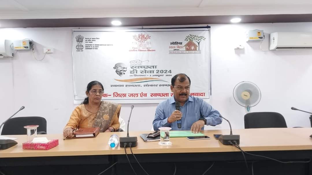 नवादा :- जिला पदाधिकारी, नवादा आशुतोष कुमार वर्मा की अध्यक्षता में आज दिनांक 12.09.2024 को डीआरडीए सभागार में दिनांक 14 सितम्बर से 01 अक्टूवर 2024 को आयोजित होने वाले ’’स्वच्छता ही सेवा’’ (स्वभाव स्वच्छता-संस्कार स्वच्छता) अभियान के सफलता को लेकर बैठक आयोजित हुई। जिलाधिकारी ने 14 सितम्बर से 01 अक्टूवर 2024 तक चलने वाली ’’स्वच्छता ही सेवा’’ अभियान-2024 के तहत नवादा जिला में गतिविधि आयोजित कर लोगों को स्वच्छता के प्रति जागरूक करने पर जोर दिया। उन्होंने बताया कि ’’स्वच्छता ही सेवा’’ के तीन पिलर्स हैं-स्वच्छता की भागीदारी, सम्पूर्ण स्वच्छता एवं सफाई मित्र सुरक्षा शिविर।
